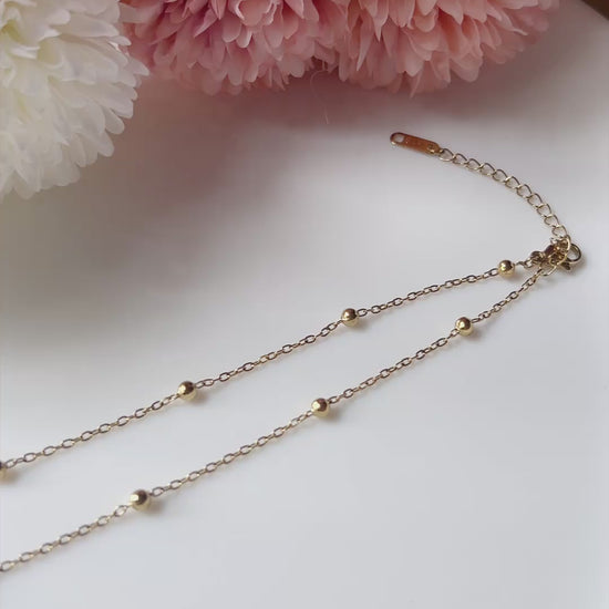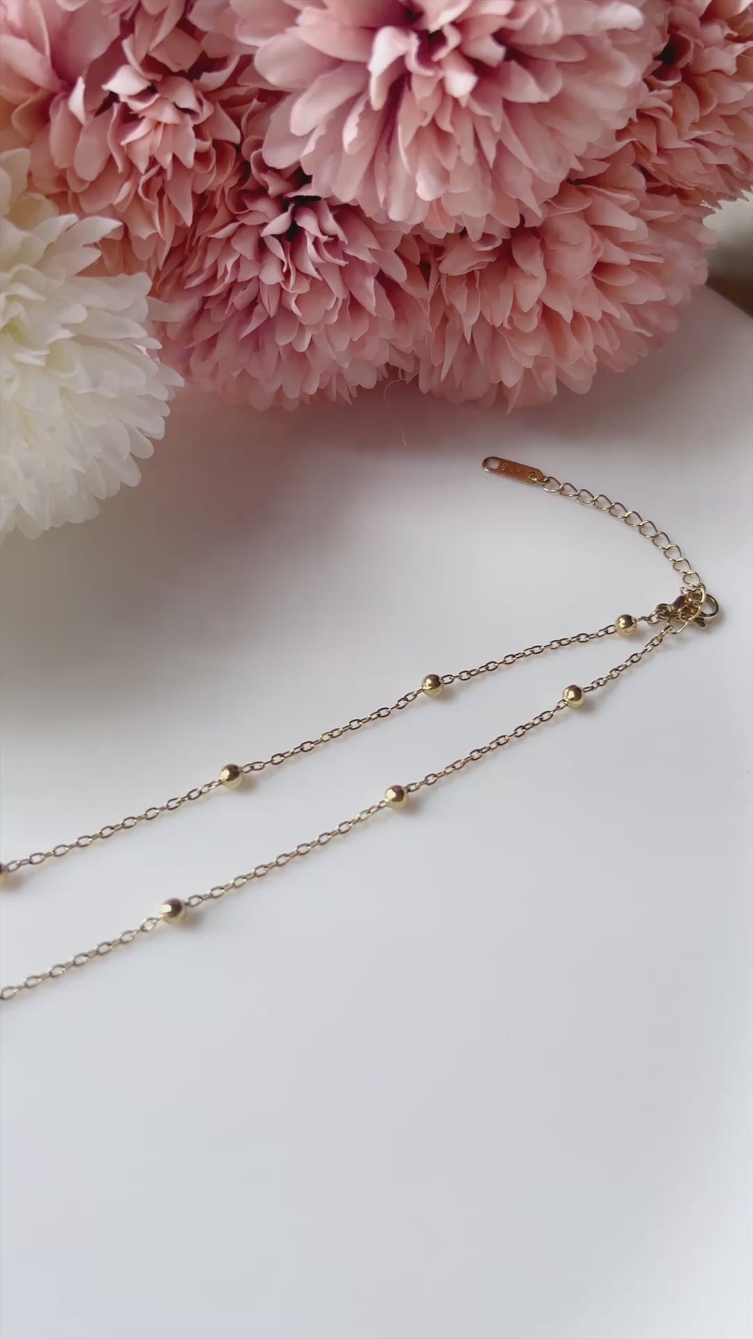 Delicate and timeless, the Golden Dusk Necklace features a dainty gold chain adorned with evenly spaced polished beads for a hint of elegance. Perfect for layering or wearing solo, this lightweight piece adds a graceful glow to any outfit—day or night.